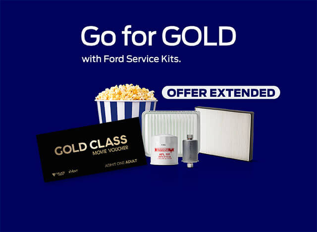 *Buy any 5 Ford Service Kits from the 'Go for Gold' select range in a single calendar month during the promotion period of October 1, 2022 – March 31, 2023, and receive an Admit 1 Gold Class movie voucher for